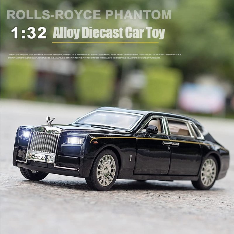 - 【Exact Replica】 Our model car is a precise 1:32 scale replica of RollsRoyce Phantom. Super spray paint technology makes the appearance cool. Mainly made of zinc alloy material with good fluidity & corrosion resistor, match ABS bottom and durable rubber tires with clear patterns, which makes the car exquisite just as a handicraft! Doors, hood, trunk can be opened. The 3D logo can stand or be stored.The interior decoration is very realistic. You can enjoy a premium experience just like real car.