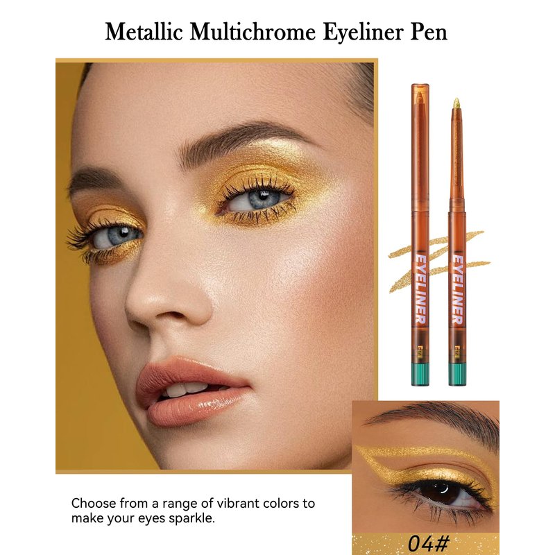 - Multichrome Metallic Eyeliner Pen - This long-lasting, shimmering gel eyeliner pencil comes in six different shades for a variety of stylish looks. When exposed to different angles of light, its color changes with the light to give a shimmering metallic sheen. Make you the center of attention in the crowd