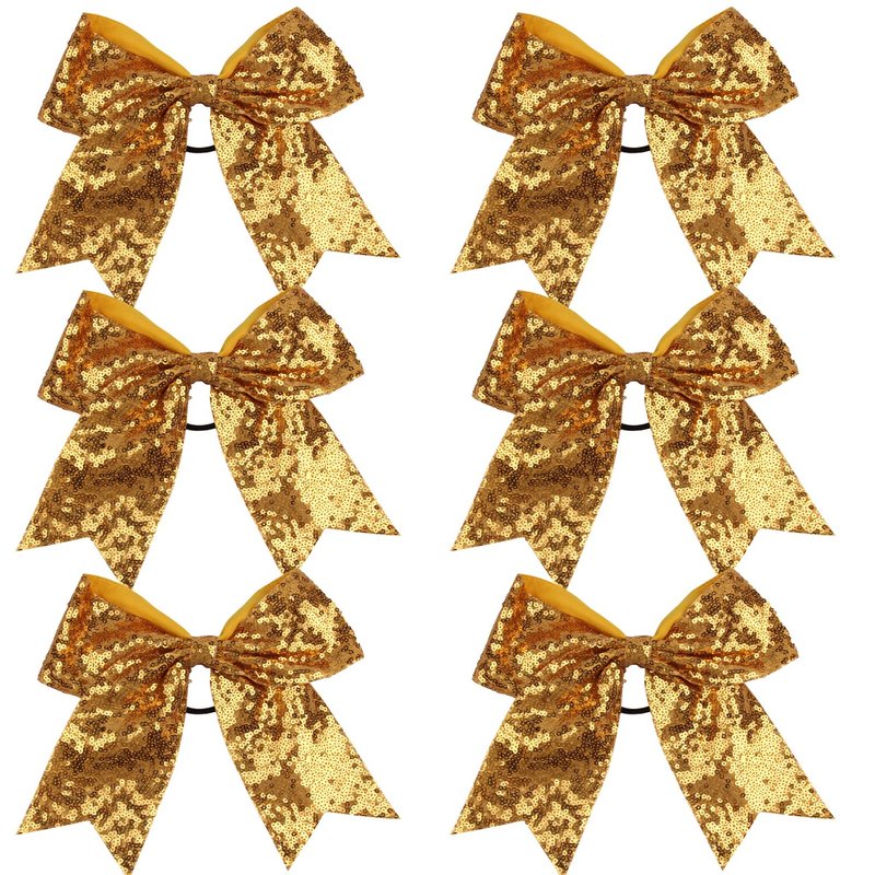 Metallic Sequin and Holographic 8 Inch Cheer Bow Cheerleader Cheerleading Jumbo Cheer Bow Hair Tie(Gold Sequin)
