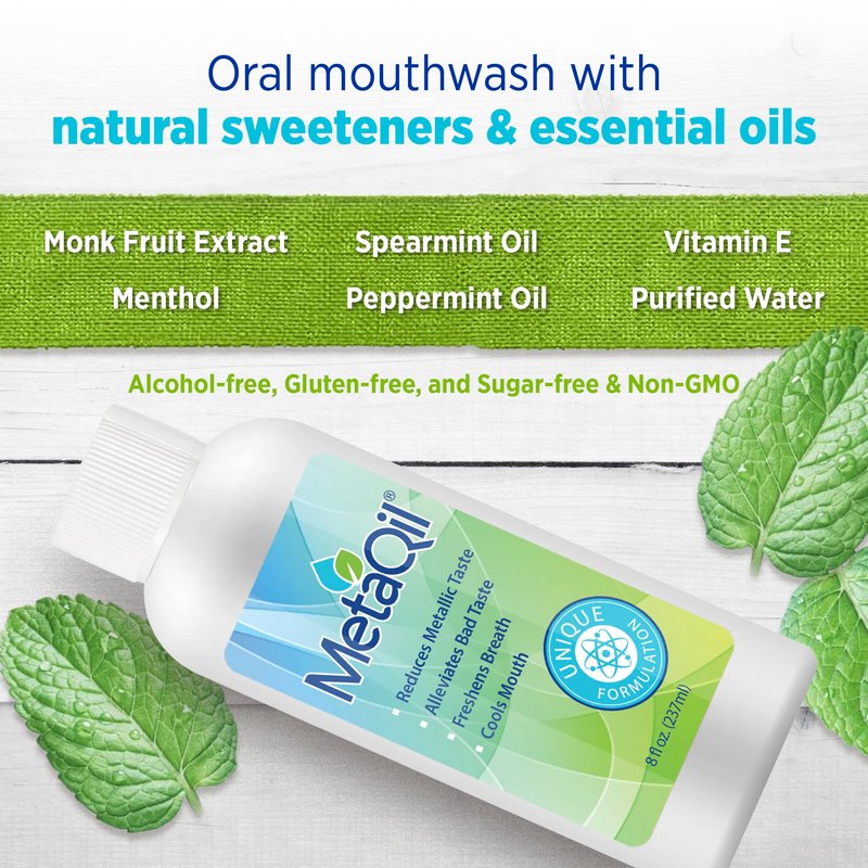 - On-the-Go Convenience - packaged in an 8 Fl Oz bottle, this MetaQil mouth wash with xylitol is the perfect size to tuck in your purse, backpack or travel bag for an on-the-go breath freshener and mouth moisturizer