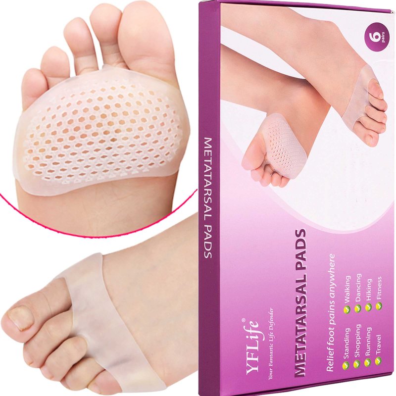 - Foot Size Fit: Metatarsal cushion for pain relief silicone material is high flexibility, it can fit on most size foot (4 to 12 women, 5 to 14 men). 6 pairs ball of foot cushion in each package, enough for your daily changes, transparent color with seamless design, perfect match all kinds of shoes