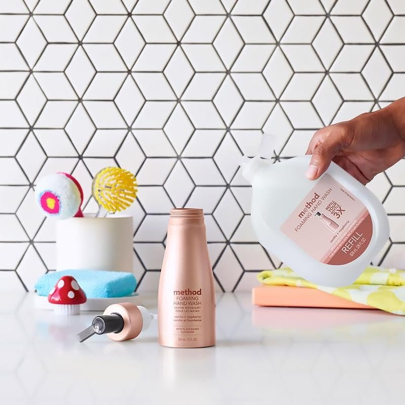 - Refills your method foaming hand wash bottle 2.8X (to be super exact).