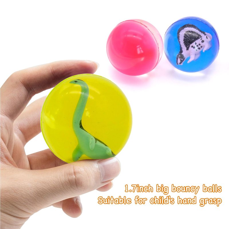 - 2. GOOD SIZE: 1.7inch big bouncy balls Suitable for child's hand grasp; With bright color and cute 3D dinosuar inside; Pefect toy for kids