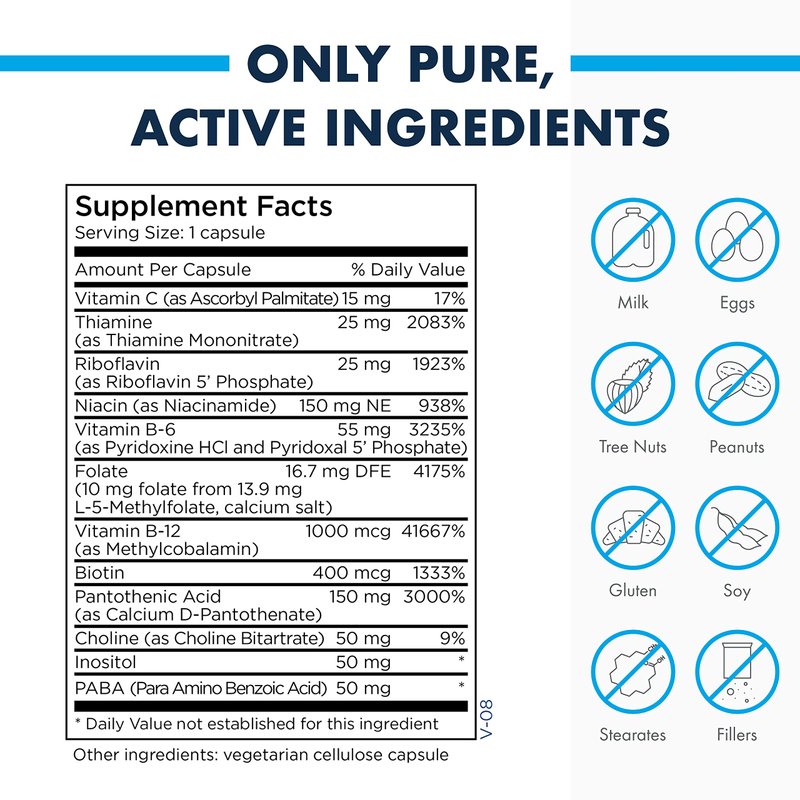 - Comprehensive Support - Our Vitamin B Complex + L-Methylfolate capsules eleminate the need for additional Vitamin B supplements and can be used to help support healthy mood, cardio and nerve function.*