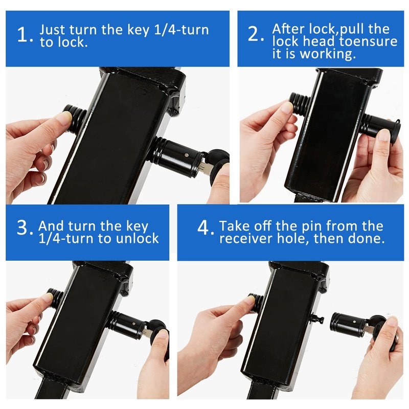 - [Higher Security and Theft Deterrence] The trailer receiver lock is made with high-strength steel. So that the trailer hitch pin lock can ensure locking safe and protect your trailer and trailer hitch ball mount from theft.