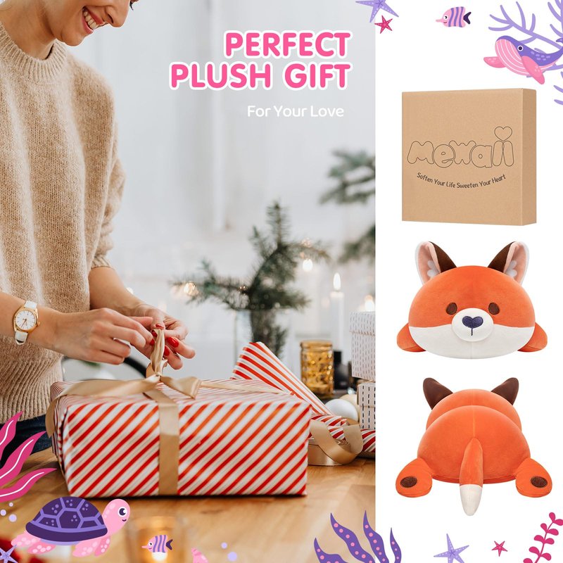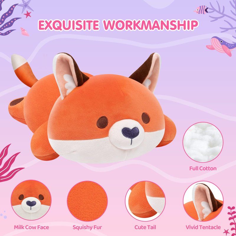 Mewaii Cute Fox Plush Pillow, Kawaii Plushies Red Fox Stuffed Animals, Squishy Plushies, Cuddle Plush Pillow for Boys & Girls