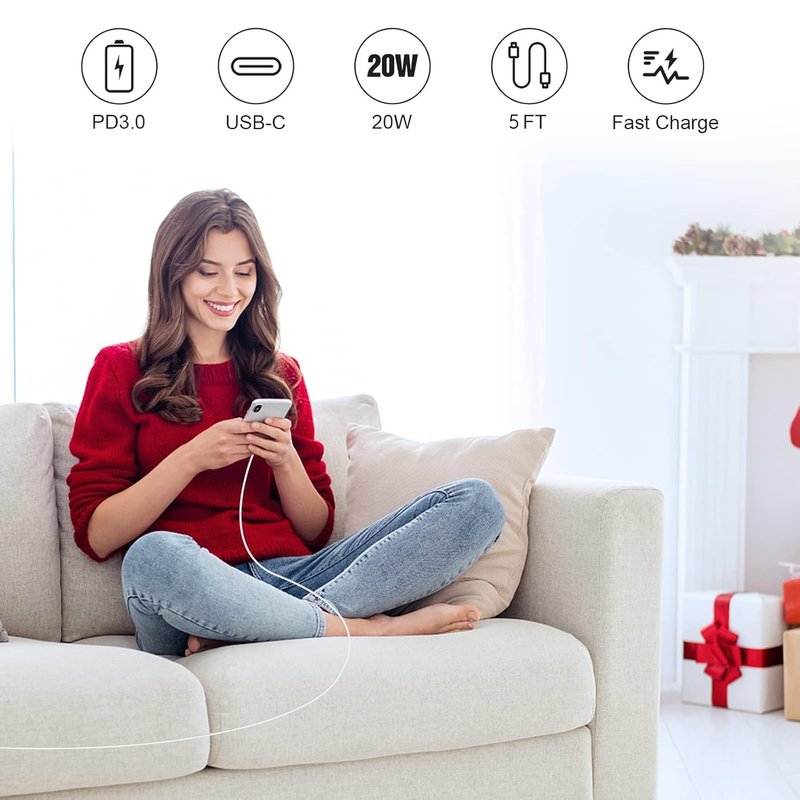• 🎁【20W USB C Charger Block】This USB C charger with 1pcs 5ft C-L cable, USB-C port provides Max 20W output power, 3X faster than a standard USB C wall charger. Enjoy fast charging with 20W max output for your SmartPhone, iPhone, Samsung, Google Pixel, and other devices.
