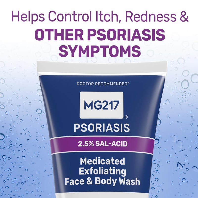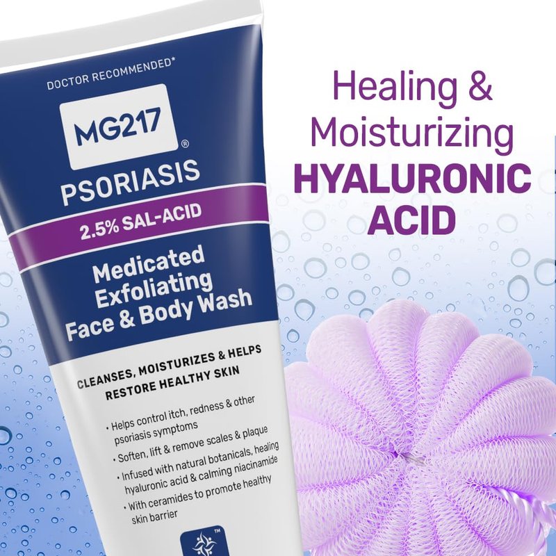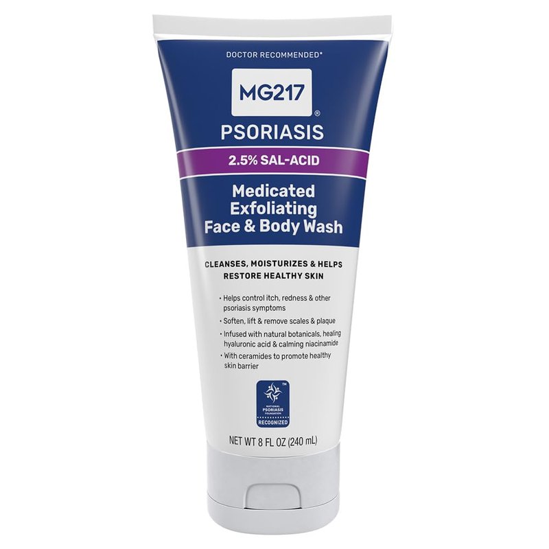 MG217 Medicated Exfoliating Face and Body Wash for Psoriasis Symptoms, Salicylic Acid, Hyaluronic Acid, Niacinamide, Ceramides, 8 floz
