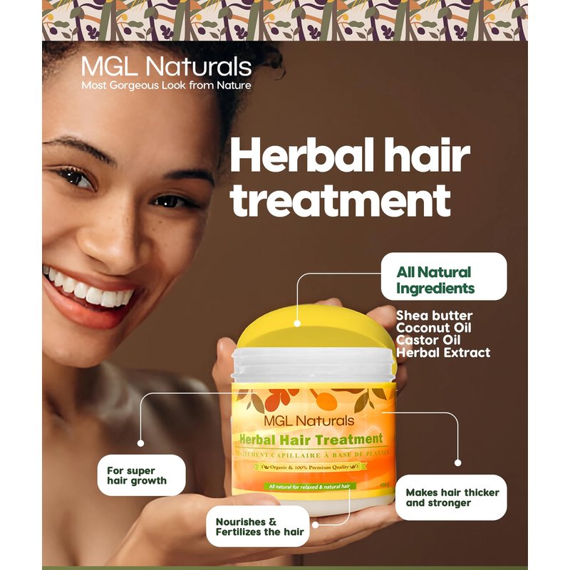 MGL Naturals Herbal Hair Treatment is an excellent blend of herbs formula for super hair growth, itching scalp and dandruff treatment. It provides nature’s best kept remedies that fertilize, nourish and moisturize the hair to become thicker and stronger. Revitalize the scalp leaving it dandruff free. Giving you the Most Gorgeous Look from nature. DIRECTION: Gently apply to slightly wet/damp, or dry scalp and hair base, then massage into scalp, leave in as hair mask for maximum treatment and style hair. Minty sensation on the scalp so patch test is advised. Best used together with MGL Naturals Coconut oil and shea butter hair food. For external use only. What makes it special? Made with botanical extracts, organic ingredients and medicinal herbs for damaged hair and scalp issues. Minty sensation. Safe on all hair textures and scalp. A little scoop goes a long way. Handcrafted with your scalp health in mind. No harmful chemicals or preservatives.