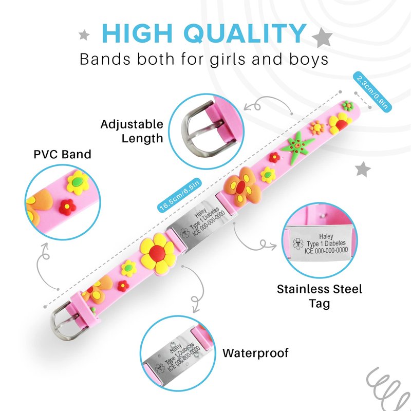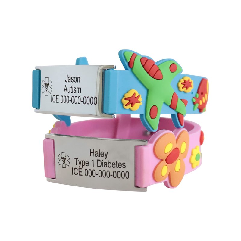 Kids medical ID alert bracelets perfect for emergency information and adjustable for kids, women and men. This is a small company located in the US ran by a hard working family that understand the importance of having your medical bracelets so we will make sure to work fast on your order