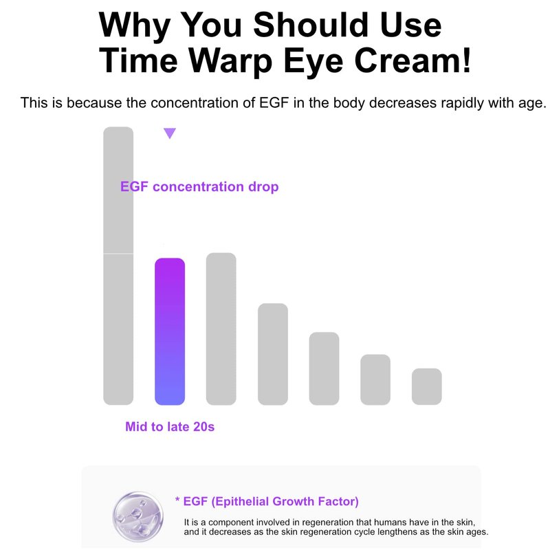 - ◆ Apply and absorb to finish anti-aging! ✔ The key ingredient of Time Warp Eye Cream is ✔ Make sure the skin inside and outside ✔ Clean skin surface ✔ Volume that fills the skin from the inside out