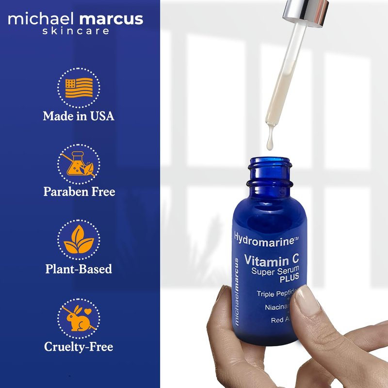 Michael Marcus Hydromarineโข Vitamin C Face Serum PLUS with Hyaluronic Acid & Triple Peptides - Reduce Dark Spots, Anti-Wrinkle, Anti-Aging, & Skin Brightening Vitamin C Serum - (30ml, 1 fl. oz)