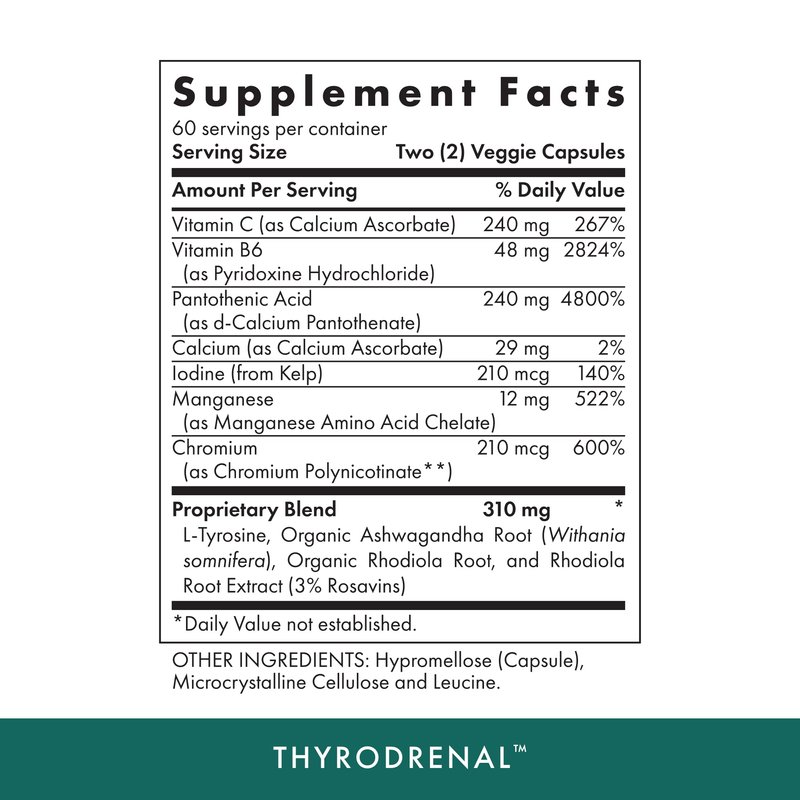 - THYROID & ADRENAL HEALTH SUPPORT - Thyrodrenal nourishes your thyroid gland with essential nutrients required to function at optimal levels. It also provides nutrients to support the adrenal glands.