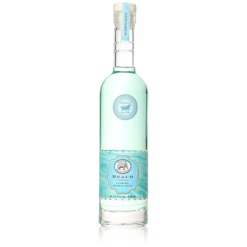 - Tinted bubble bath in an elegant long-necked glass bottle with stopper