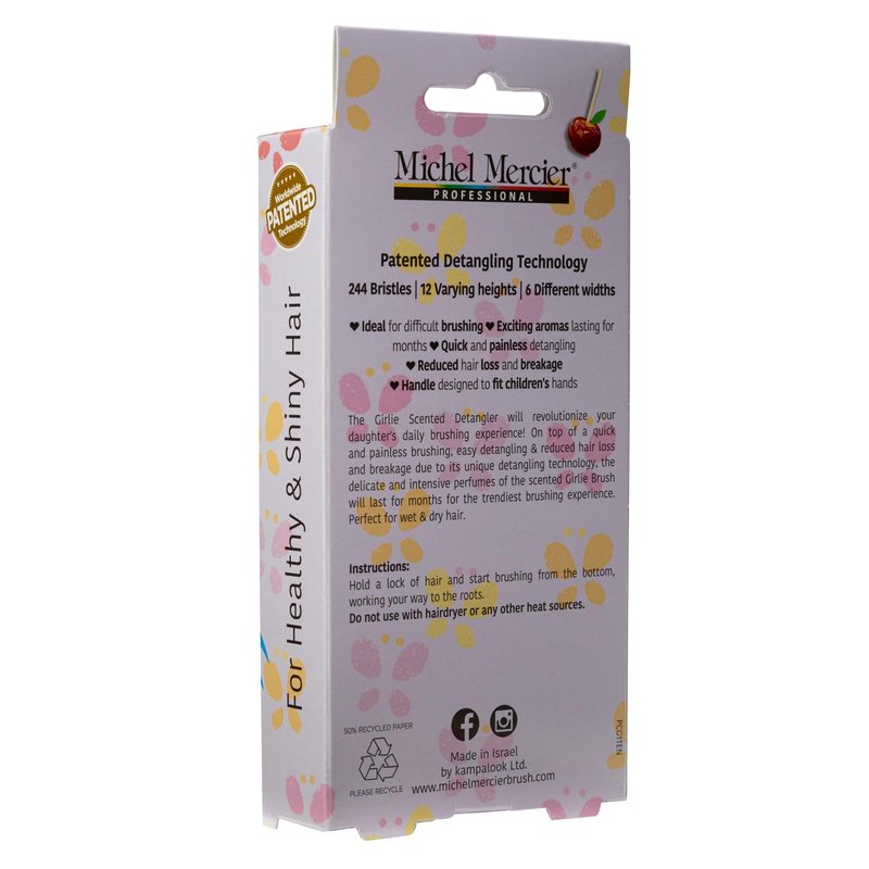 Michel Mercier The Girlie Scented Detangler Brush - Painless Kids Hair Brush for Shiny Hair - Thick and Curly Hair - Candy Apple - Purple-Pink - 1 pc