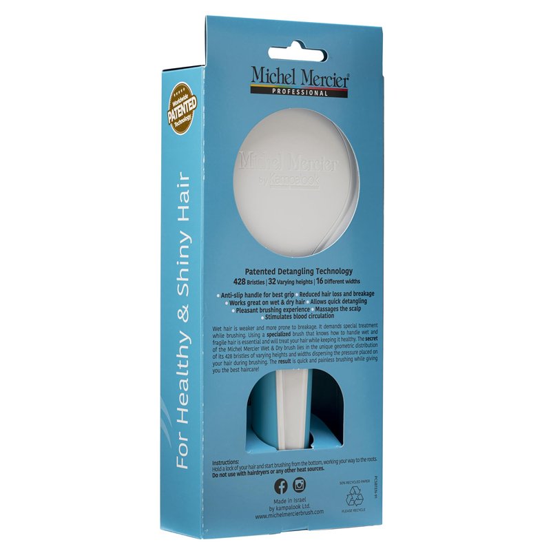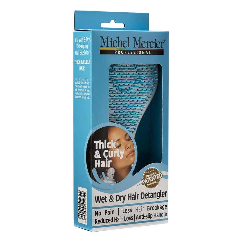 Michel Mercier Wet and Dry Hair Detangler Soft Bristles Hair Brush - Thick and Curly Hair - Blue-White - 1 pc
