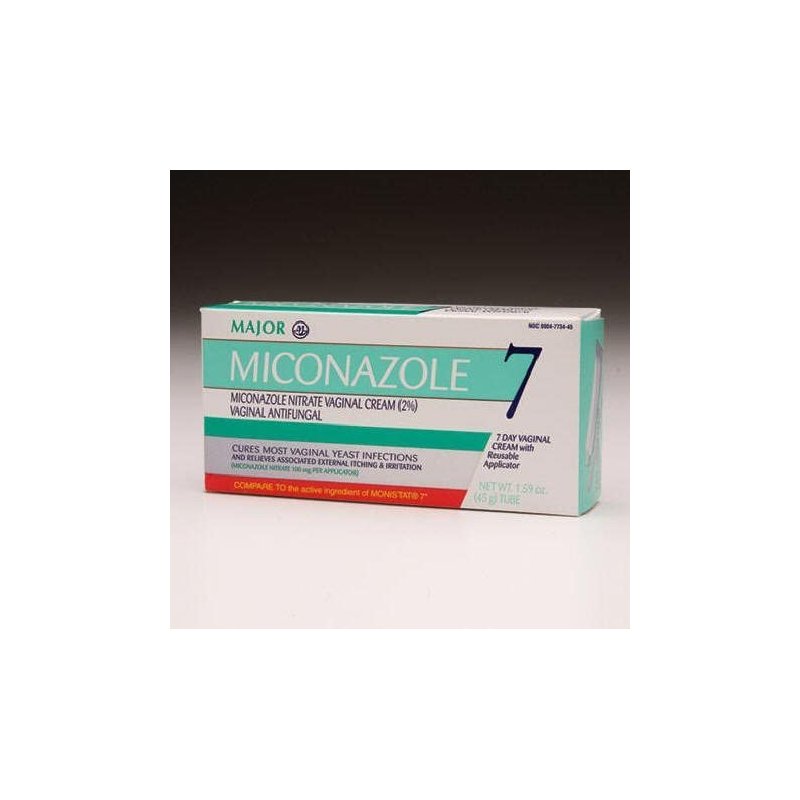 Miconazole Vaginal Cream 1.59 oz Tube Mfg. by Major Pharmaceuticals - This medication is used to treat vaginal yeast infections. Miconazole reduces vaginal burning, itching, and discharge that may occur with this condition. This medication is an azole antifungal. It works by stopping the growth of yeast (fungus) that causes the infection. The vaginal product comes in 2 forms (a vaginal cream or tablet). Some products also come with a skin cream to be applied to the area around the outside of the vagina. Ask your doctor before using this medication for self-treatment if this is your first vaginal infection. This medication only works for vaginal fungal infections. You may have a different type of infection (such as bacterial vaginosis) and may need a different medication. If you have a fever, chills, flu-like symptoms, stomach/abdominal pain, or a bad-smelling vaginal discharge, do not use this medication. Contact your doctor right away because these may be signs of a more serious infection.