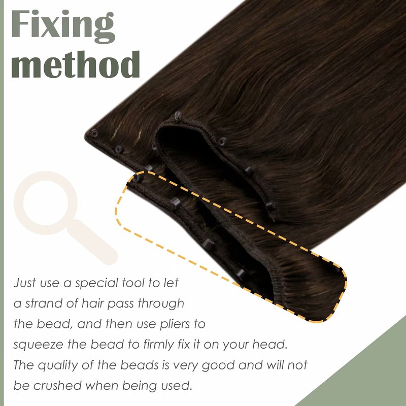 LaaVoo Micro Ring Beaded Human Hair Weft. The hair does not need any glue, weaving, clip or tape. The hair is very invisible as long as you wear it in the right way.