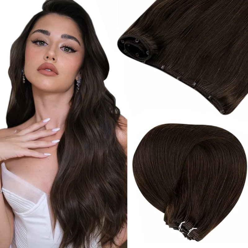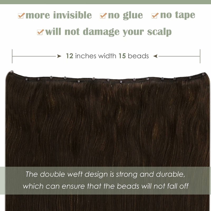 Micro Beaded Weft Extensions Brown LaaVoo Beaded in Weft Remy Extensions Dark Brown Easy Weft Micro Ring Weft Brown Human Hair Extensions Micro Beads Weft Brown Double Weft 12" Width 50g 18"