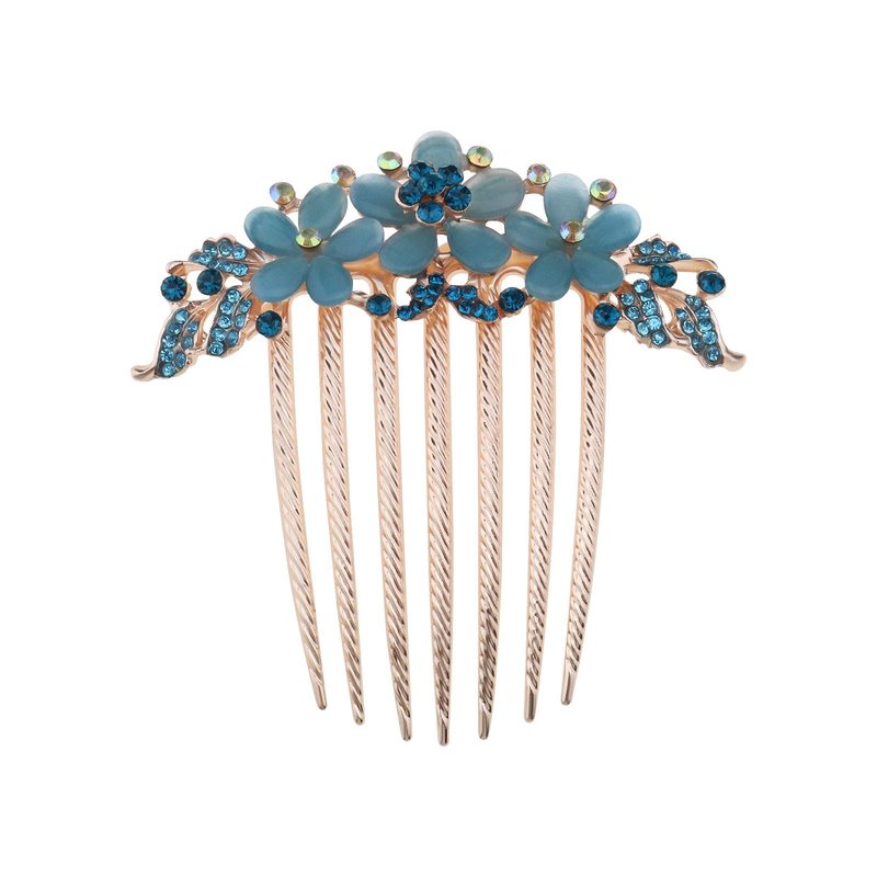 Micro Traders Flower Hair Comb Rhinestone Wedding Bride Headpiece Hair Ornament Decorative Hair Accessories for Women And Girls Hairstyles Blue