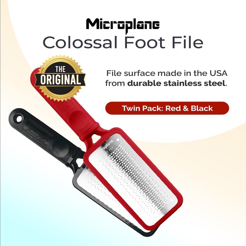 Microplane Colossal Foot File, Red and Black - The Original Stainless-Steel Foot Scraper, Dead Skin/Callus Remover for Feet, Foot Scrubber, Pedicure Tools for Salon-Quality Foot Care (2 Piece Set)