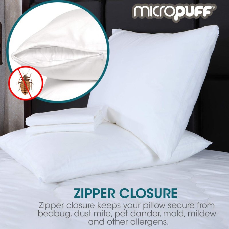 - ZIPPERED PILLOW PROTECTOR: Micropuff pillow cases use a plastic nylon coil zipper to ensure durability and that the zipper lock doesn't easily break, snap, or jam like other pillow protectors do, which are made of metal.