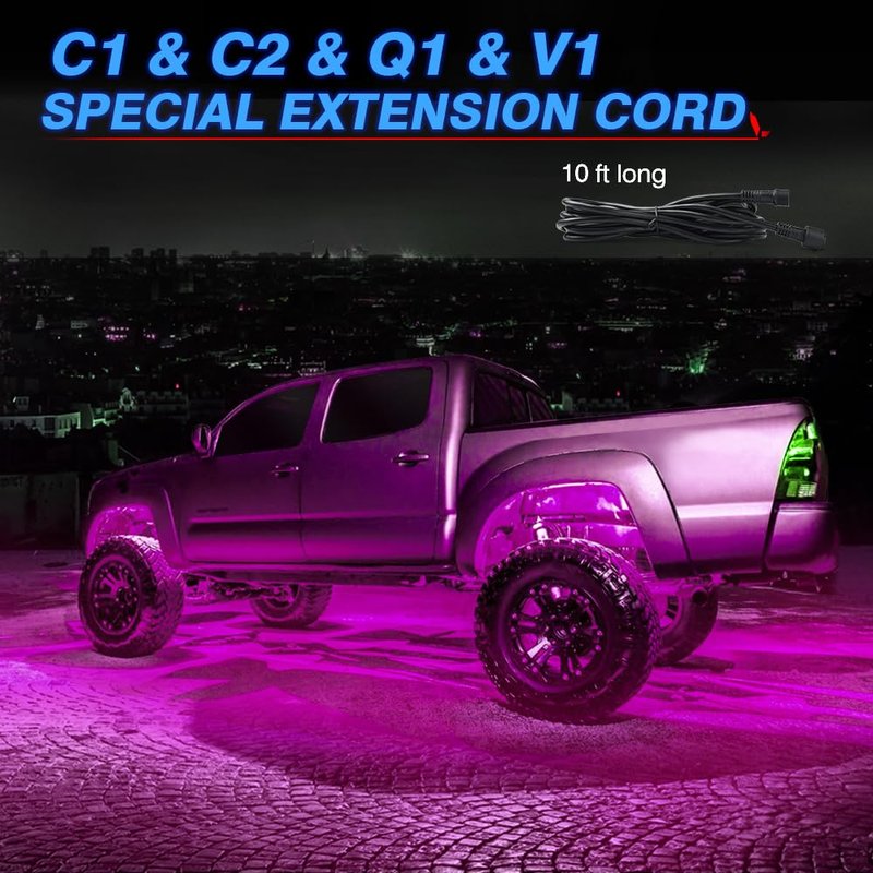 - Total 10 feet, 15Amp, AWG: 14. Extension cord for C1 C2 Q1 Series RGBW Rock Light and V1 Wheel Ring Lights. Perfect for those who are looking for longer cable to connect their existing rock lights
