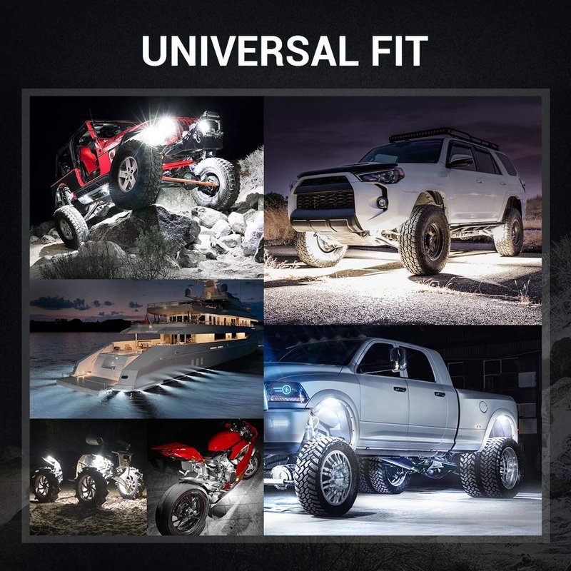 - Universal Fit - Suitable for 12-24V car, truck, offroad, boat, SUV, UTV, ATV, etc. Use them under your vehicle or as Interior light, Off-Roading light, Reverse light, Dome light, Neon Light LED replacement