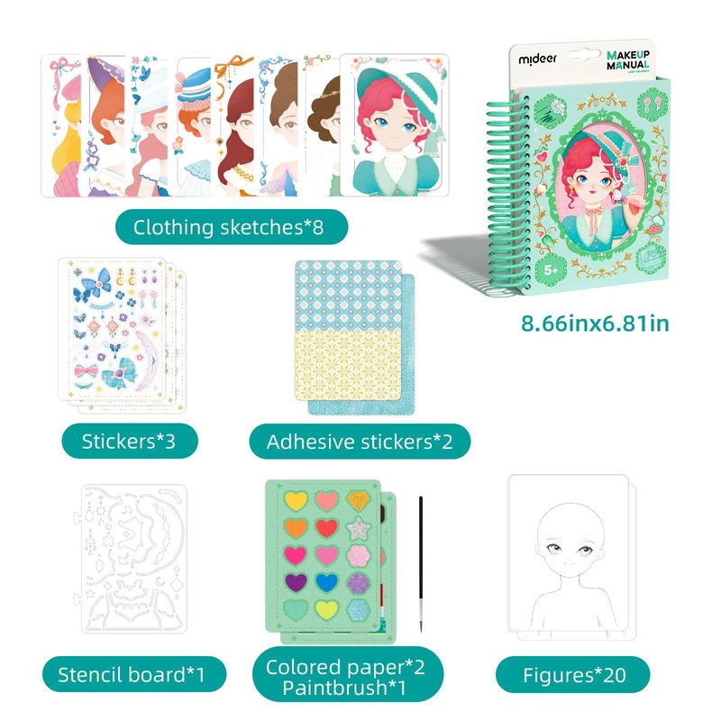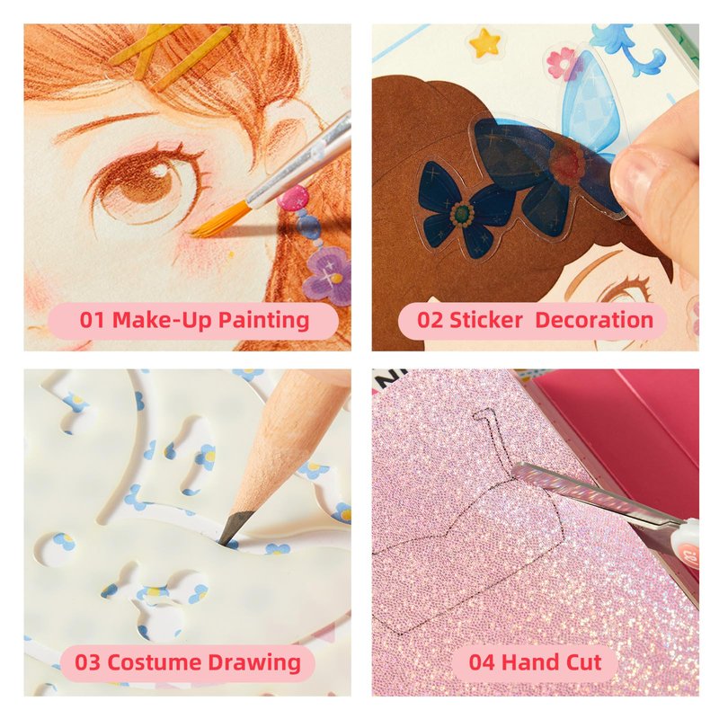Mideer Fashion Design Sketchbook is a versatile and engaging creative tool designed for children aged 5 to 7. This sketchbook offers a variety of play options within three main themes: makeup and coloring, sticker dress-up, and clothing design and collage. With its interactive and imaginative features, it encourages young artists to explore their artistic talents and enhance their fine motor skills. These activities promote self-expression, creativity, coordination, and design skills. The sketchbook serves as both a creative outlet and an educational tool, enhancing cognitive abilities, patience, and attention to detail. It's an excellent choice for young beginners to explore the world of fashion and art.