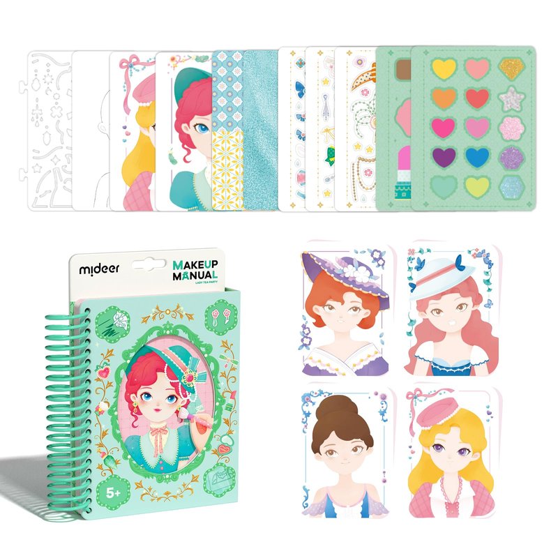 MiDeer Fashion Design Sketchbook with Watercolor Painting, Princess Dress-up Activity Book with Stencils and Stickers, Make-Up Fashion Designer Kits for Kids 5 6 7 (Lady Tea Party)