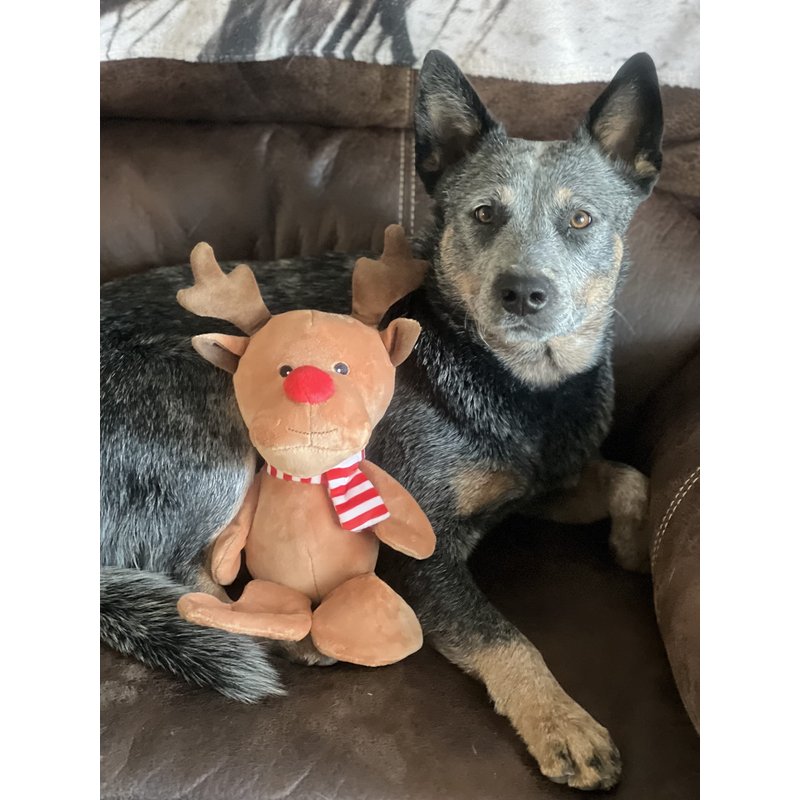 - Stuff your dog's stocking with this soft plush reindeer dog toy. With its red nose and striped sweater, it has the perfect amount of Christmas cheer!