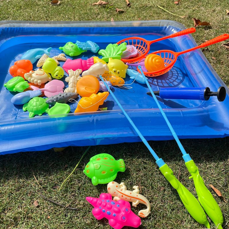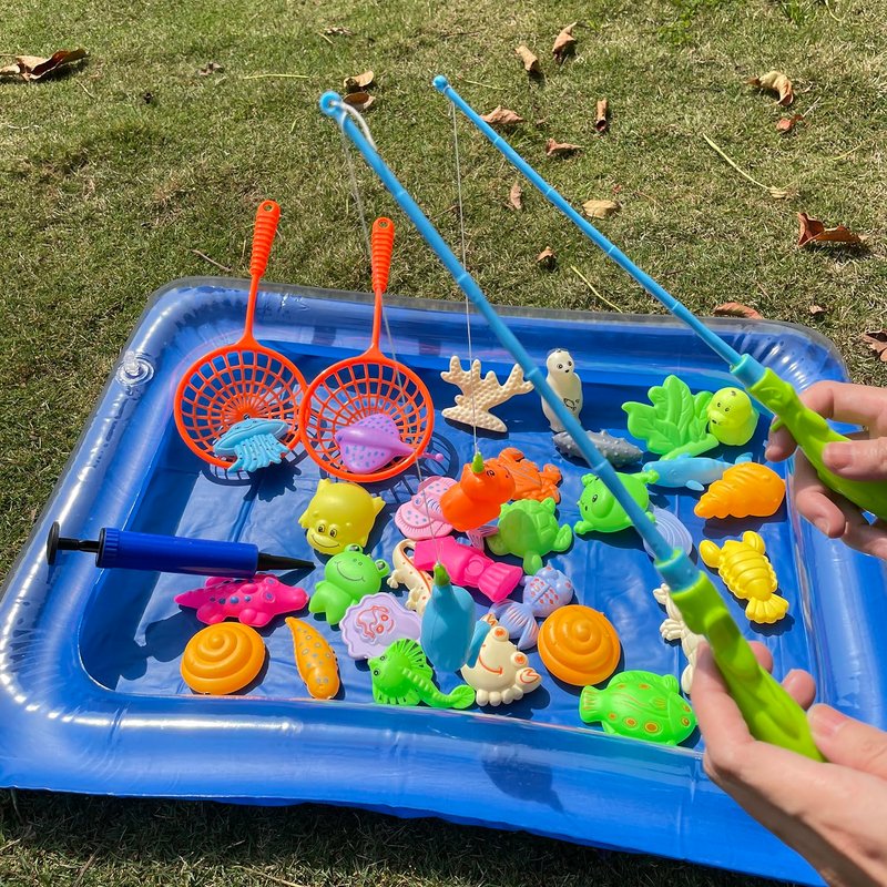 - When you aren't using the magnetic fishing game in your bathtub, you can take it anywhere. Super convenient inflatable pool allows you to set this up at a park, as a beach toy, as a toddler pool toy, an outdoor yard toy, or even in your home.