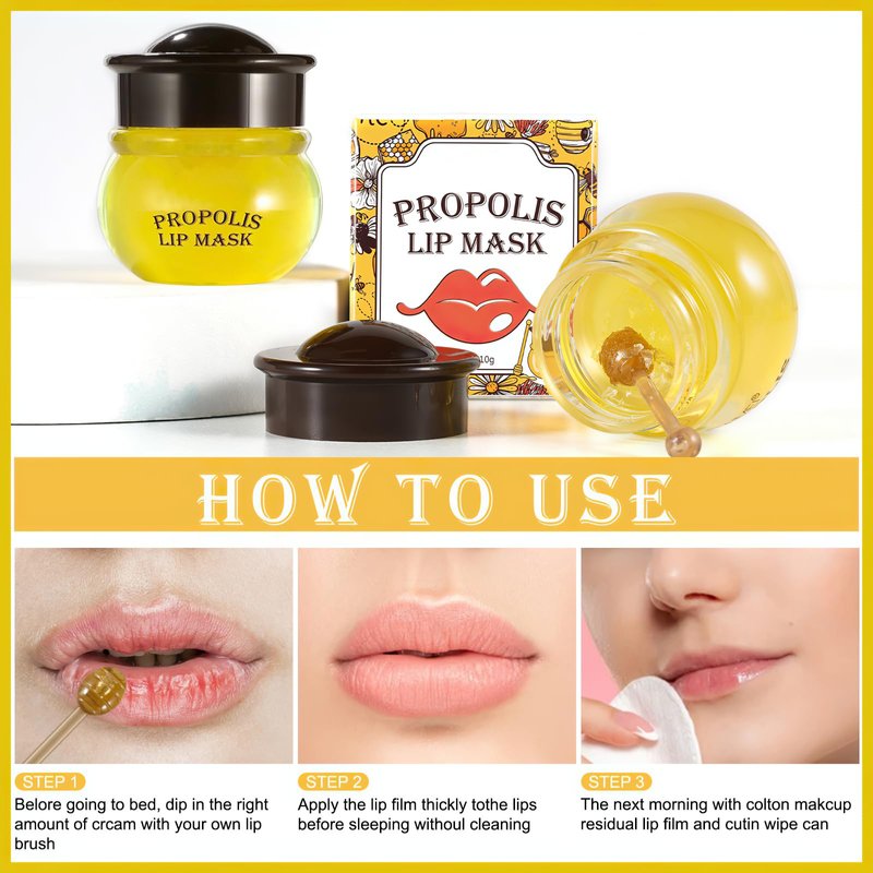 - NATURAL INGREDIENTS - Formulated with propolis extract and tocopherols, the lip mask moisturizes and cares for lips, effectively cleans dead skin, and repairs damaged and dry lips, bringing a wonderful enjoyment of sweetness and lubrication.