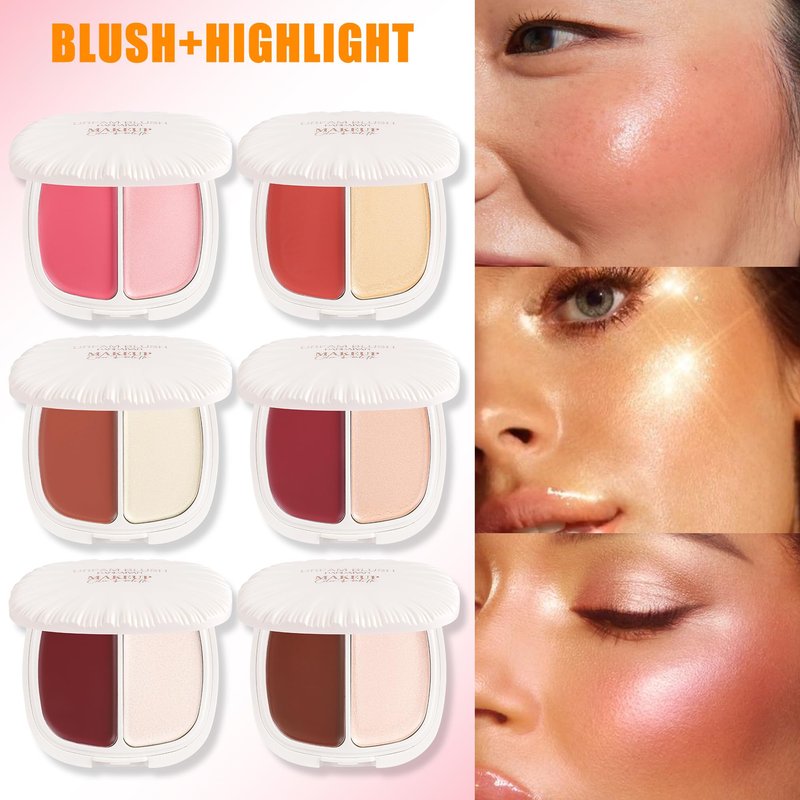 - 2-IN-1 PEARL BLUSH HIGHLIGHTS: This highlighter and blush combo instantly sculpts, defines, and highlights in one sweep. Each duo has two colors that complement every skin tone. 8 combo is available, a delicate and stereo makeup finish is no longer hard to get!