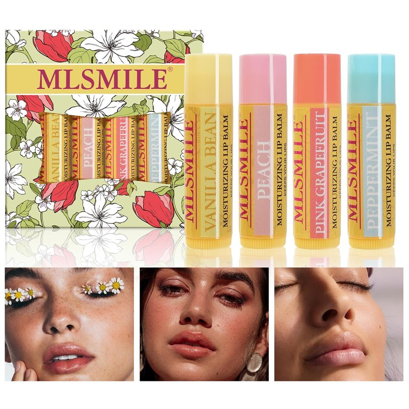 - FLAVORFUL LIP BALM: Bursting with fruit flavors, our moisturizing lip balm contains four lip balms in vanilla bean, peach, pink grapefruit, and peppermint flavors. Start your day with a delicious lip balm!