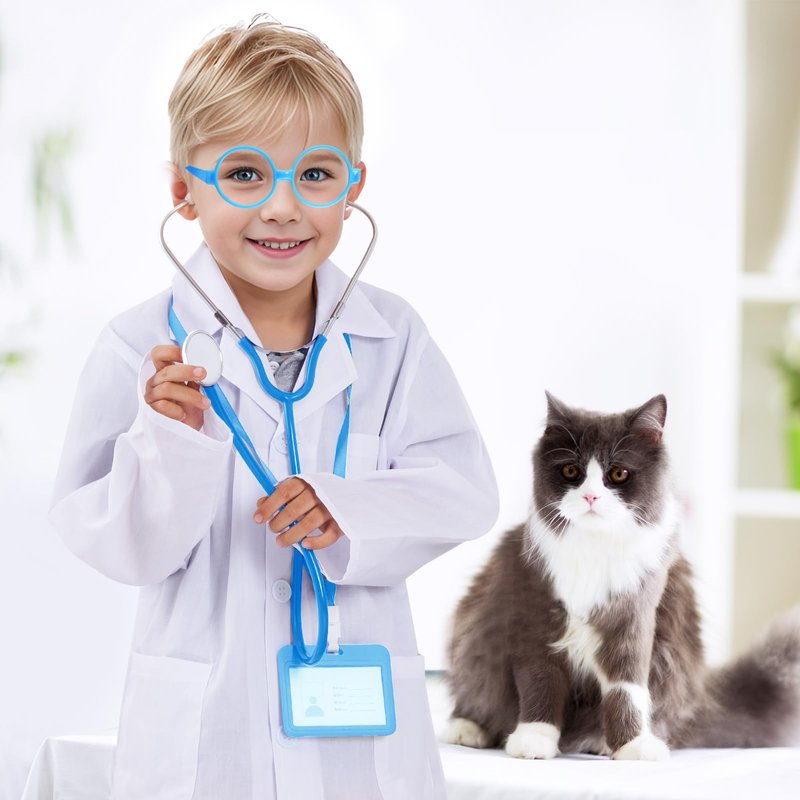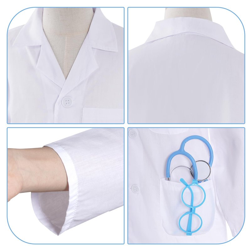 - FUN DOCTOR COSTUME: By wearing this Doctor Lab Coat with Stethoscope, ID Card and Glass, your child can learn about the world of doctor in a hands-on and interactive way. They can conduct pretend experiments, and explore the wonders of the natural world.