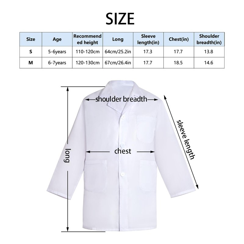 - EASY TO USE AND WEAR: The doctor scientist costume kids lab coat is easy to put on and take off. Kids scientist lab coat are designed with button and two pockets. They are designed to have a loose fit, making it easy for kids to move around and play comfortably.