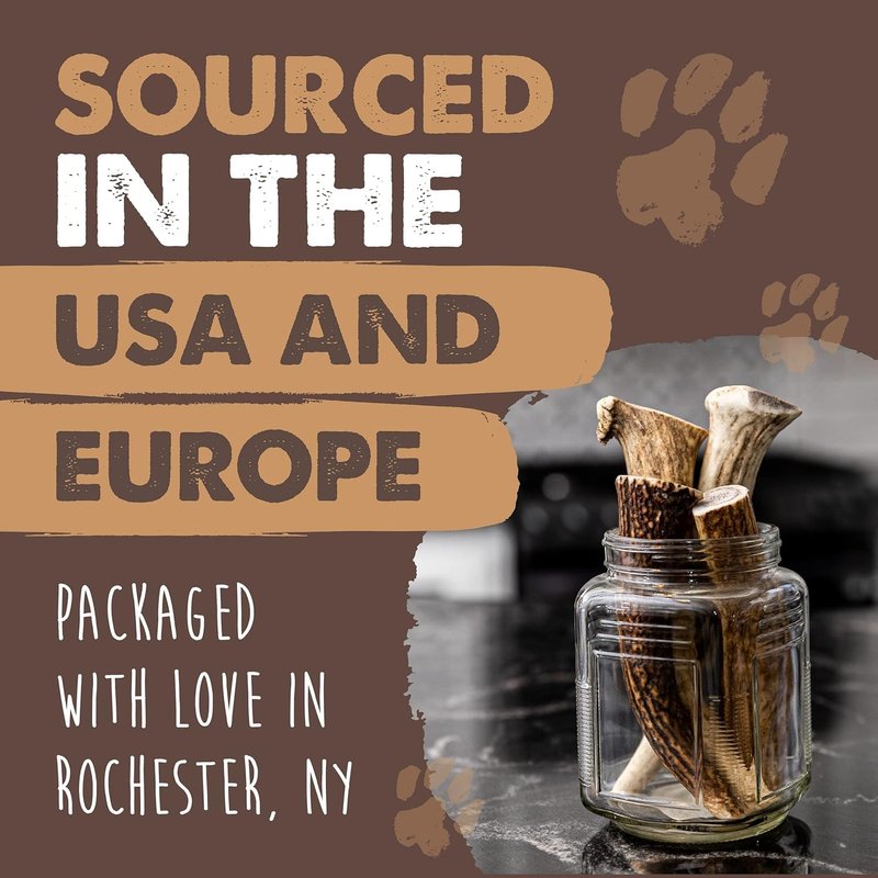 MIghty Paw Naturals Elk Antlers Our Elk Antlers are super long lasting and perfect for your four legged power chewers. Lasting 50% longer than most other chews, you can keep your dog busy allowing you to focus on work, life and whatever else comes your way. Great for dog parents that work from home or just need to redirect their pets energy. Does your pup chew everything? Ours too! Refocus their chewing with our all natural antlers! They are great for mental stimulation, supporting dental health, and may help refocus destructive behaviors. Your furniture will thank you! We believe the simplest solution is usually the best one. That’s why we don’t add anything to our antlers, making them a great healthy alternative to bleached rawhides. With only 1 ingredient, responsibly sourced elk antlers, this chew is free from added flavors or artificial preservatives. Grain-free, gluten-free, chemical-free, and guilt-free so you can feel good knowing your pet is getting the best! Elk Antlers are an all natural product and each one is unique! Variety in size, shape, weight, density, and hue of color is 100% normal. But no worries! We only pick the best ones! We hand package all of our dog chews and treats right here at our facility in Rochester, NY. We are dog people, just like you, and we can’t wait to share our snacks with your pu! moose antlers for dogs, deer antler for dogs, deer antler spray, xl antler, deer antlers for small dogs, dear antler, antler treats for dogs, elk antler puppy, antler farm, dog horn chew, chew toys antler, antler rattling, antler dog toy, animal antlers real, kong elk antler, antler bones for dogs, kashima antlers, whitetail naturals, deer antlers large, dog antlers for aggressive chewers, extra large elk antlers for dogs, ell antlers for puppies, elk antlers for dogs large, elk bones for large dogs, antler medium, split dog antler chews, big dog antler chews, dog chew antlers, dog bone deer antler, xxl elk antlers for dogs, deer antlers