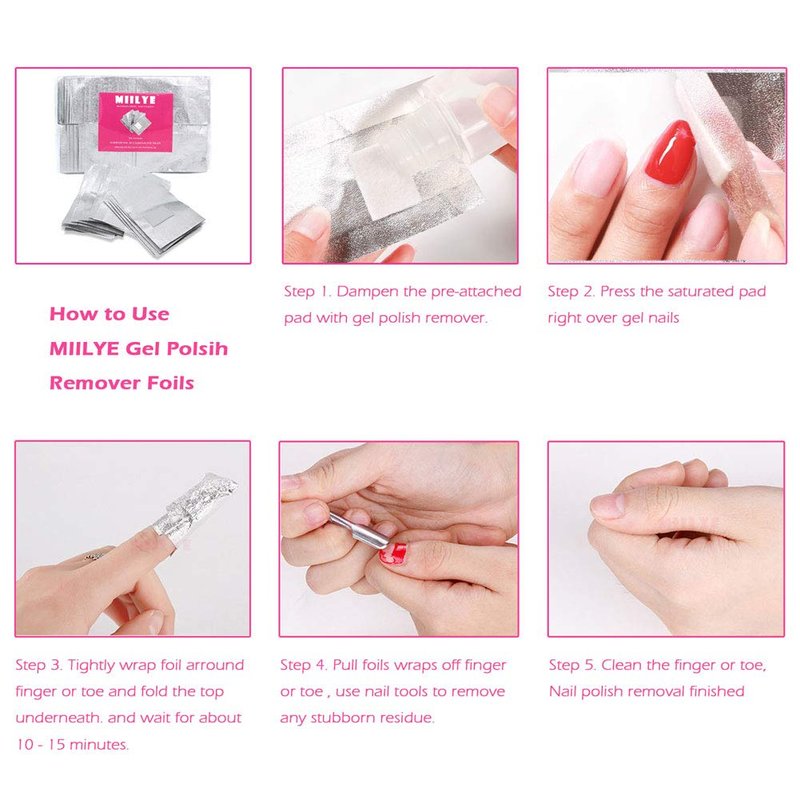 - MIILYE nail polish remover foil contains pre-attached gel nail remover pads, NOT pre-soaked with acetone remover, MIILYE gel nail remover foil wraps need to be used with your own acetone nail gel polish remover.