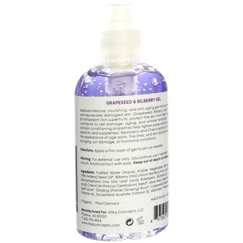 MIKA NATURALS Grapeseed & Bilberry Gel | Anti-aging Moisturizer for Face & Body (8 oz.)