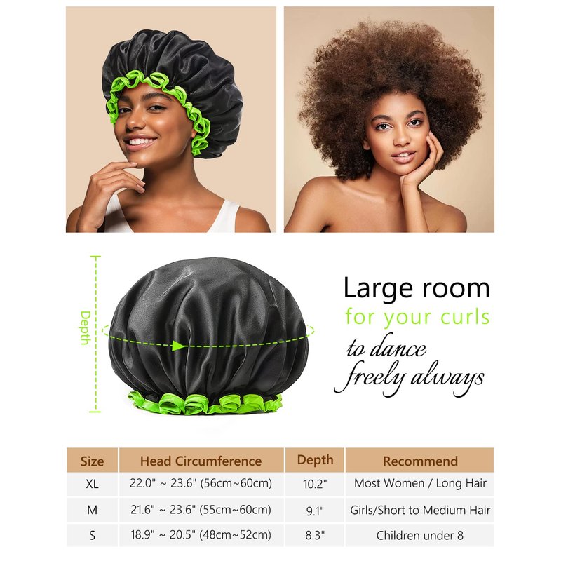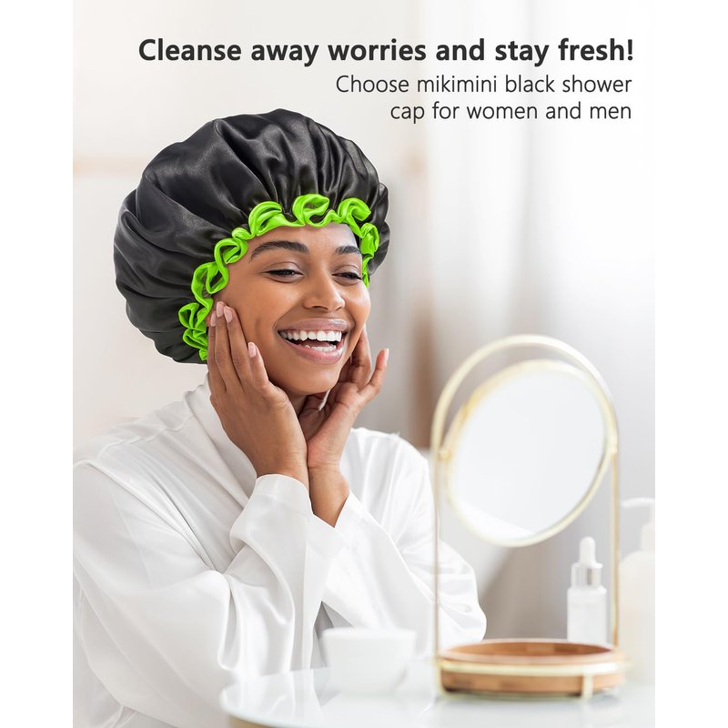 - 🍀【QUICK CHOOSE FOR FAMILIES!】 We offer 3 vibrant colors (orange, green, and yellow) in 3 sizes (S, M, and XL), with 2 packaging options (1 PC and 2PC). S is for children under 8, M is for short to medium hair and small head, while XL is for long hair or larger head. The mikimini black series is the most considerate black shower caps on the market. Find the black shower caps you need right here!