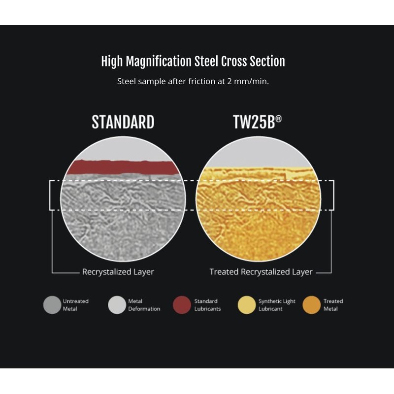 Its exceptional performance in adverse conditions has made this weapons lubricant the choice of the U.S. Military and its Allies. TW25B is unparalleled in performing in extreme pressure and heavy load bearing applications. Additionally, TW25B and its derivatives are environmentally safe, non-flammable and easy to apply. Finally, TW25B and its derivatives work exceptionally well under extreme temperature conditions, performing well in ranges from -90°F (-67°C) to +450°F (232°C). TW25B and its derivatives are truly the most versatile extreme performance lubricants in the world. Benefits: Extremely reliable in all climates, under all weather conditions, on all types of firearms. Minimizes friction, reduces wear and extends the life of weapon parts. Minimizes carbon residue and build-up of copper (Cu) and lead (Pb). Minimizes accumulation of sand, dust, salt and gunpowder residues. Greatly inhibits rust and corrosion. Eliminates galling and short-stroking. Performs in a broad temperature range: -90°F (-67°C) to +450°F (232°C). Provides improved bore accuracy and increased muzzle velocity Permits storage of a weapon in fire-ready condition for extended periods. Reduces time and frequency of maintenance with easy wipe-off cleaning. Delivers very long lasting lubrication and corrosion protection; will not freeze. Resists wash-off, wear-off, burn-off, and evaporation between cleanings. Repels moisture, sand and dust. Generally harmless to wood, rubber, plastic and composite parts. Proudly made in the USA.