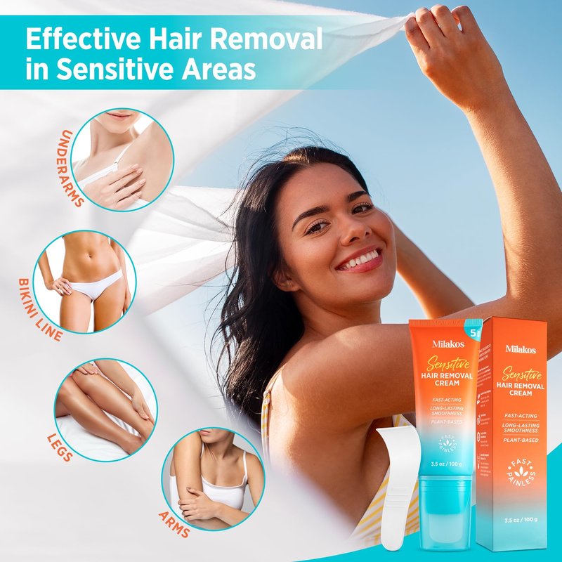 Milakos facial hair removal cream for women is a cutting-edge solution designed to deliver smooth, hair-free skin with unparalleled ease. Engineered with an advanced plant-based formula, it is gentle on sensitive skin, providing effective hair removal without irritation. Suitable for various areas, including legs, arms, bikini line, and underarms, our body hair removal cream meets the needs of diverse grooming routines and personal preferences.
