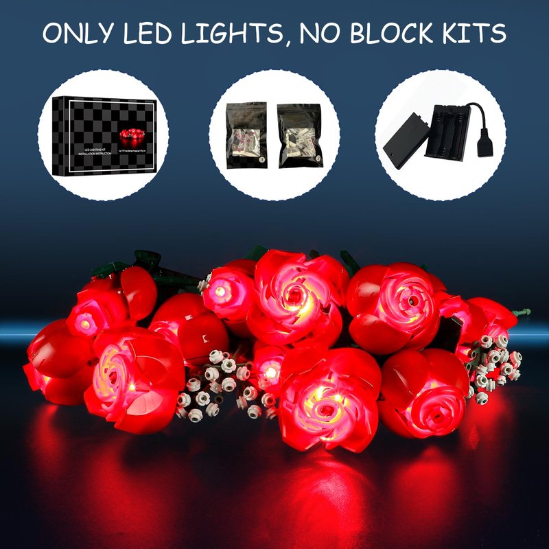 - 【DESIGNED FOR LEGO 10328 】- LED lighting designed specifically for Lego 10328 Bouquet of Roses set, with this lighting kit you can transform your building set from dark to bright, bringing it to life.(LED light only, Not Building Block Kit).