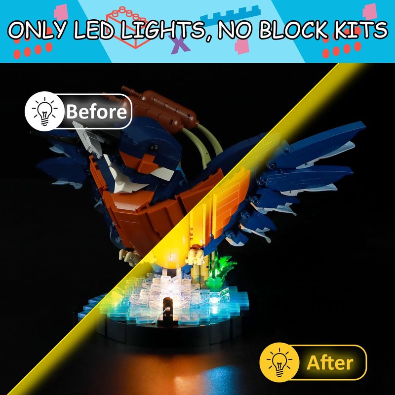 - 【DESIGNED FOR LEGO 10331】- LED lighting designed specifically for Lego-10331 Kingfisher Bird, with this lighting kit you can transform your building set from dark to bright, bringing it to life.(LED light only, Not Building Block Kit).