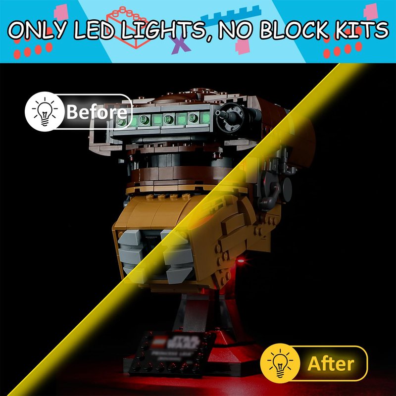 - 【DESIGNED FOR LEGO 75351】- LED lighting designed specifically for Lego 75351 Princess Leia Boushh Helmet set, with this lighting kit you can transform your building set from dark to bright, bringing it to life.(LED light only, Not Building Block Kit).