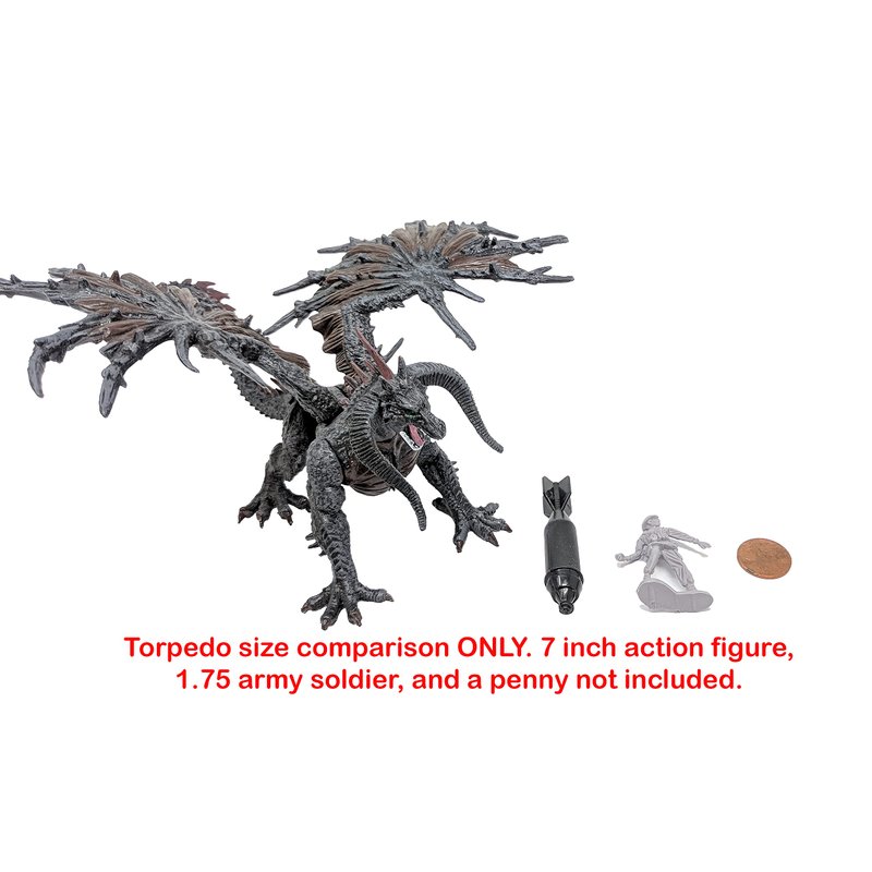- Please see pictures for torpedo comparison to a 7 inch action figure, army soldier, and a penny.