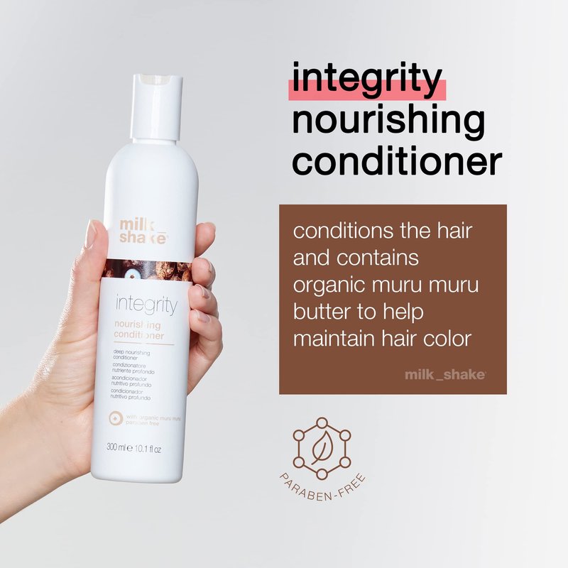 - milk_shake integrity nourishing conditioner, is a paraben free formula that conditions the hair and contains organic muru muru butter to help maintain hair color.