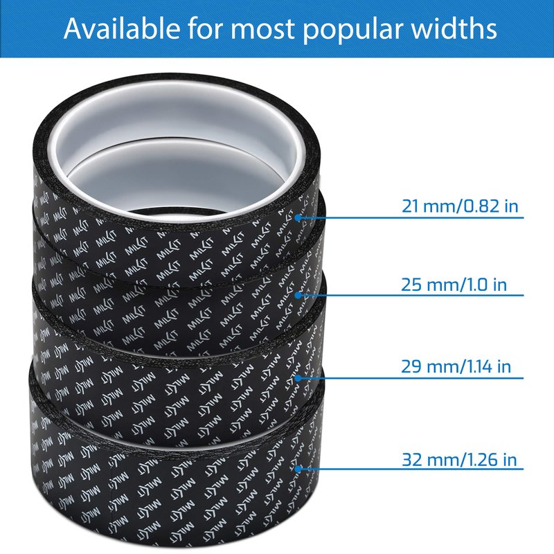 - AVAILABLE FOR MOST POPULAR WIDTHS: milKit tubeless bike rim tape is available in the four most popular widths β covering most rim sizes: 21mm, 25mm, 29mm, 32mm.