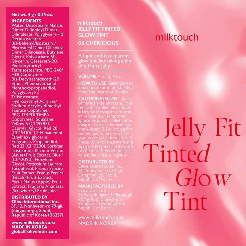 MILKTOUCH Jelly Fit Tinted Glow Tint - Hydrating Lip Balm with Moisturizing Color, Long-Lasting Gloss, Lightweight Formula, Radiant Shine, Perfect for Daily Wear, Cruelty-Free 06 Chericious